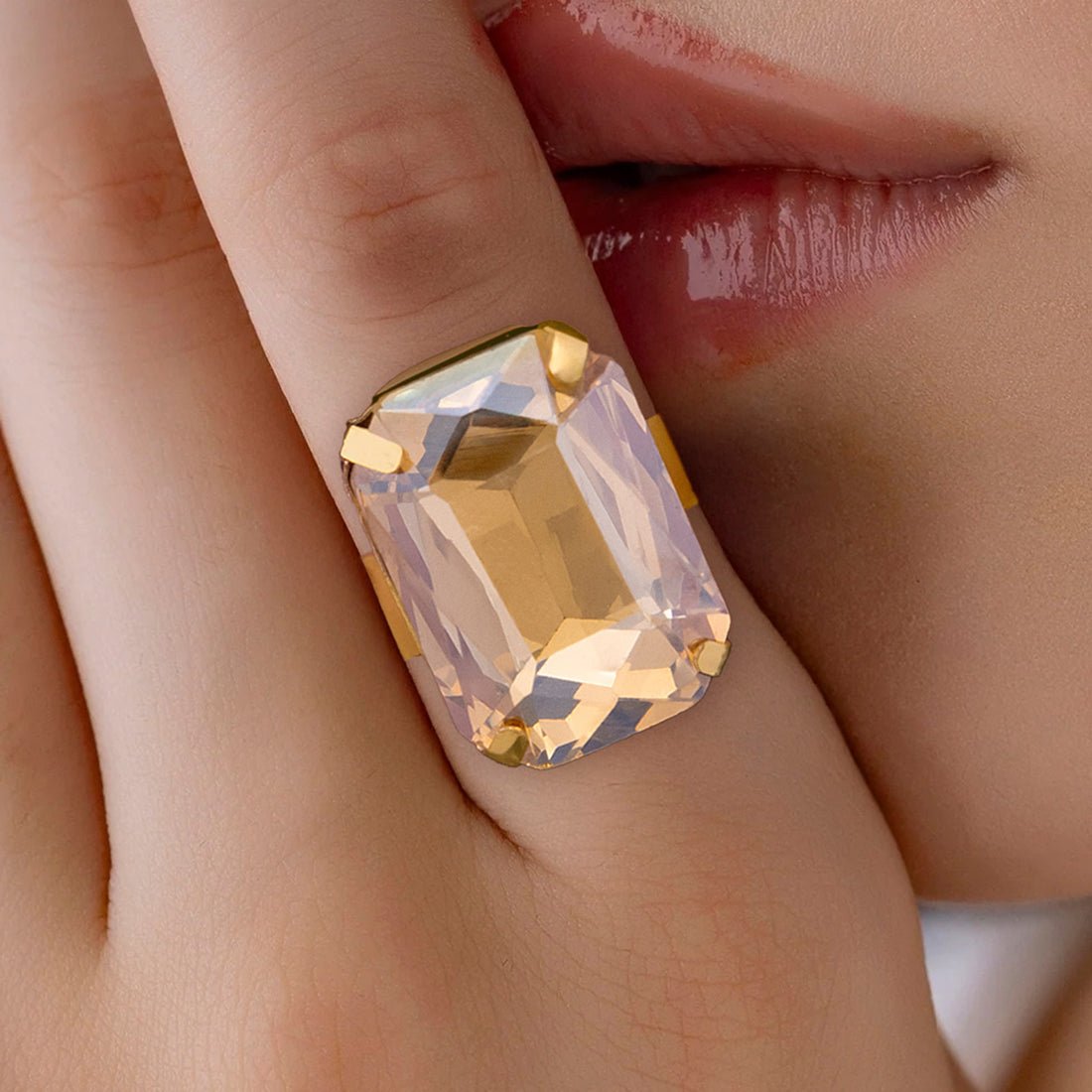 EYRA Ring Anti-Tarnish Rectangle Shape Champagne Crystal