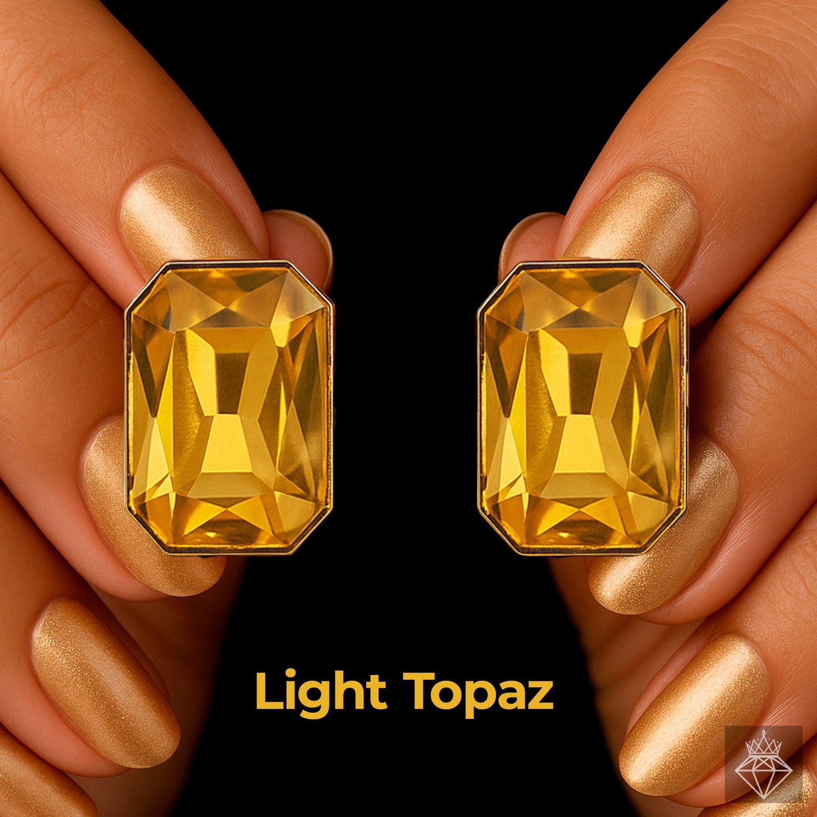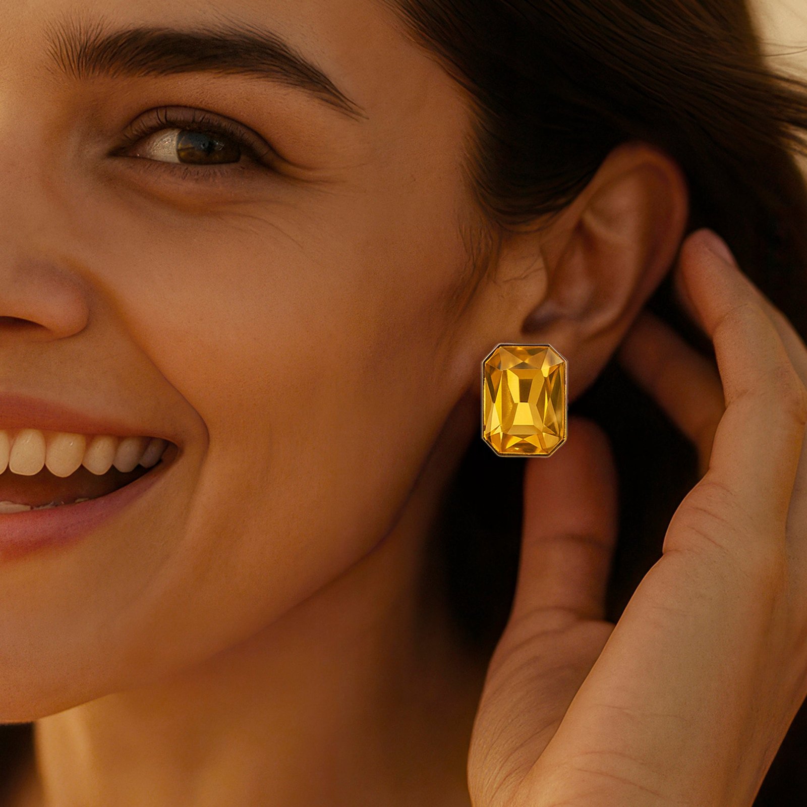 EYRA Earrings Anti-Tarnish Rectangle Shape Light Topaz Crystal Studs