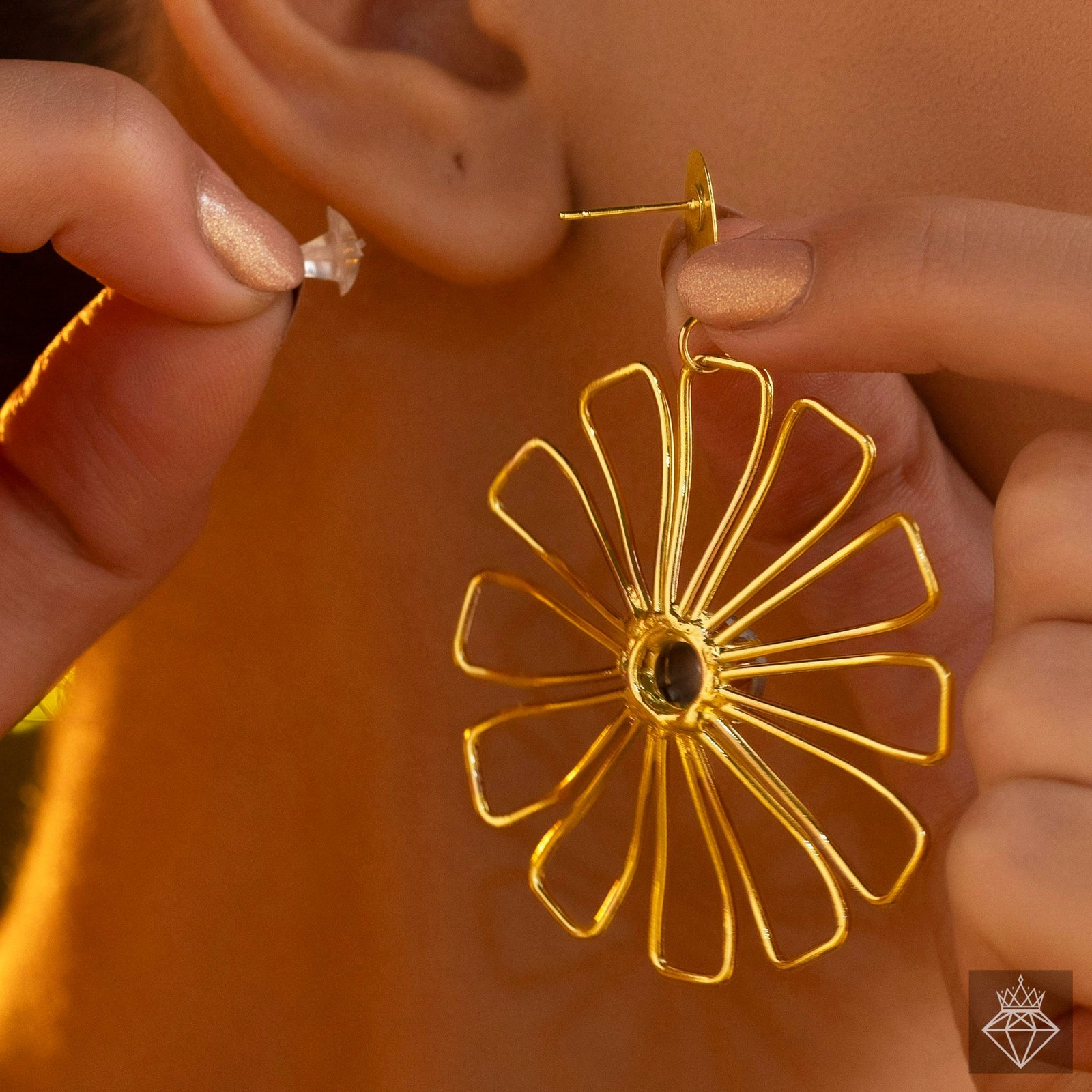 These lovely wire blossom earrings have a delicate floral design that is meticulously made from high-quality metal. Each petal is embellished with sparkling crystals that catch the light beautifully, creating a magical shine to the whole design. The lightweight construction offers a comfortable fit, making them ideal for both everyday elegance and exceptional occasions. With their graceful curves and superb craftsmanship, these earrings ooze refinement and charm. The strong hook fastening ensures a secure fit, so you may wear them with confidence. They are versatile and attractive, and can easily accent any ensemble, from casual to evening wear, making them an essential addition to any jewelry collection. Elevate your style with these beautiful earrings, which exemplify timeless beauty and grace.