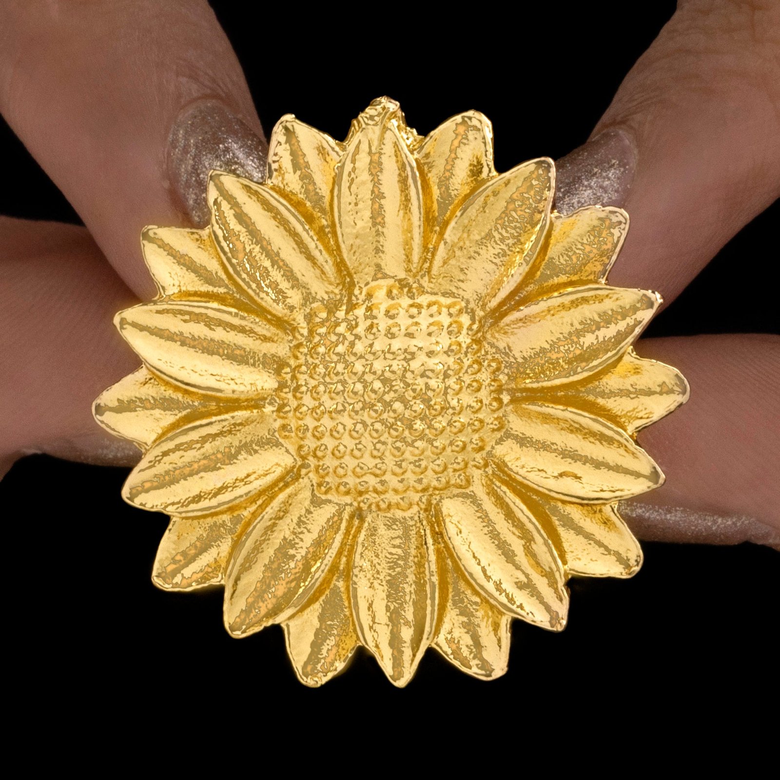 This lovely little sunflower ring is a stunning example of nature's beauty, with detailed embellishments that capture the spirit of a sunflower in a small, delicate shape. The petals are delicately carved to produce a soft, textured appearance, while the core of the flower glows with a gentle golden tint, offering a touch of warmth. The ring's lightweight and comfy style makes it great for everyday use, easily complementing any outfit. Its minimalist yet eye-catching design offers a joyful, nature-inspired touch to your jewelry collection. This little sunflower ring, whether worn alone or layered with other rings, adds a refreshing, happy element to your outfit and is ideal for those who value both beauty and simplicity.