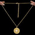 Enhance your look with this exquisite pendant necklace, which has a delicate design that combines traditional and contemporary elements. The pendant features an exquisite ethnic-inspired pattern accented by a dazzling crystal stone in the middle, which beautifully reflects light to create a delicate glitter. Suspended on a sleek small curb chain, this necklace strikes the ideal blend of beauty and versatility, making it appropriate for both everyday use and special occasions. Its lightweight and comfy design allows you to wear it all day without strain. Combine it with your favorite ensembles for a touch of timeless charm and sophistication. This versatile ornament pairs well with casual, formal, and ethnic outfits, making it a must-have addition to your jewelry collection.