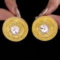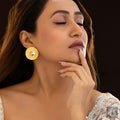 The exquisite design of these ethnic pendant earrings blends fine details with a hint of glitz. The pendants exhibit the beauty of cultural arts with their finely created traditional motifs. A stunning crystal stone adorns each earring, adding a luminous glow that wonderfully complements the delicate workmanship. The earrings are perfect for both formal and informal settings since they provide a well-balanced combination of style and assertiveness. They are comfy and light, and they hang elegantly, attracting attention without overpowering the style. These earrings provide a distinctive touch to your jewelry collection and add a chic ethnic charm to any ensemble. Whether paired with contemporary or ethnic clothing, they subtly provide classic beauty and flair to your look.
