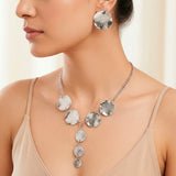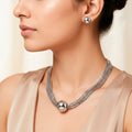 This stylish jewelry set includes a sleek box chain necklace and matching stud earrings, providing a modern and timeless look. The box chain necklace has a sleek and polished finish, making it a versatile item that will match any ensemble, from casual to evening. The matching stud earrings lend a touch of subtle elegance to the overall appearance. This lightweight set is designed with accuracy and attention to detail, making it comfortable for everyday wear while retaining a beautiful appearance. This combo is ideal for dressing up for a special occasion or making a subtle statement with your everyday look. Its basic style and adaptable charm make it an excellent gift or must-have addition to any jewelry collection.