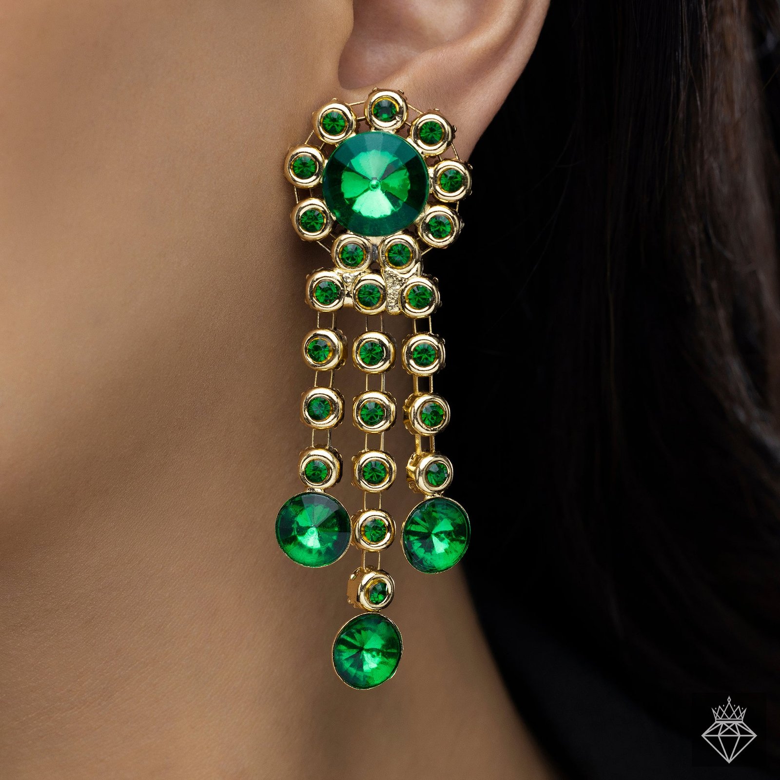 These gorgeous dangle earrings, which have brilliant crystal flowers elegantly attached to delicate crystal chains, will elevate your elegance. The sparkling chains produce a captivating movement with each step, and the elaborate flower design exudes charm. These earrings, which are made to wonderfully capture and reflect light, give any ensemble a glamorous touch. They are ideal for both special occasions and daily sophistication because of their lightweight yet eye-catching design, which guarantees comfort without sacrificing style. The allure is increased by the combination of flowing crystals and floral elegance, which creates a sophisticated and elegant look. These earrings offer the ideal ratio of refinement to glitz, whether they are worn with an evening gown or a stylish attire. An essential piece to add to your jewelry collection, it adds subtle glitter to any ensemble.