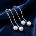 Add a touch of elegance with these stunning earrings featuring a graceful U-shaped rhinestone chain and a delicate round pearl drop. The shimmering rhinestone chain catches the light beautifully, creating a subtle sparkle with every movement, while the lustrous pearl drop adds a classic and timeless charm. Designed for both sophistication and versatility, these earrings complement a wide range of outfits, from evening gowns and festive attire to chic casual ensembles. Lightweight and comfortable, they offer all-day wearability without compromising on style. Whether worn for weddings, parties, or special occasions, they bring a refined and graceful touch to any look. A perfect gift for someone special or a luxurious addition to your jewelry collection, these earrings embody elegance and modern charm effortlessly.