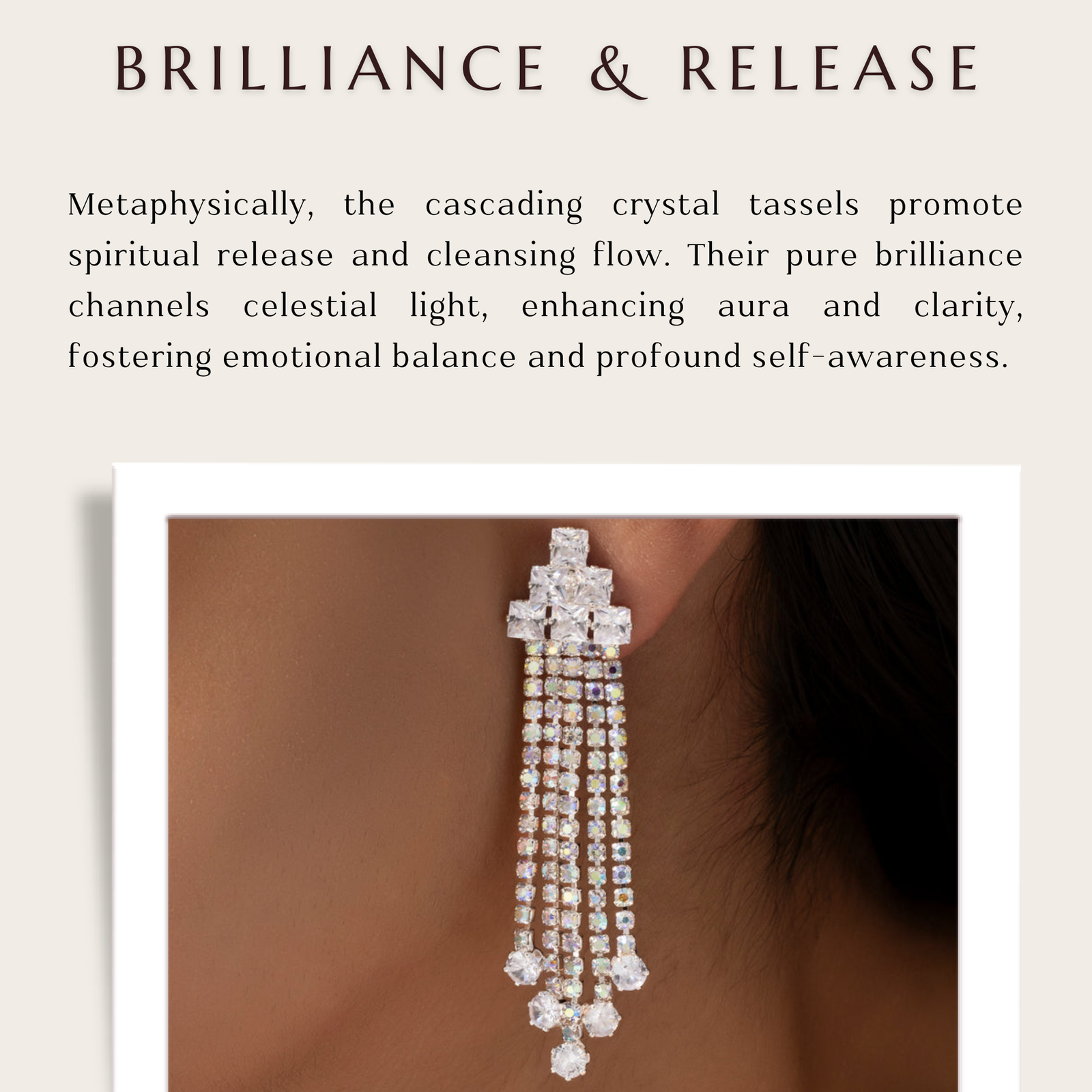 Add these striking dangling earrings to your ensemble for a pop of color and glitter. With each movement, their striking square crystal tops and flowing chains embellished with rainbow rhinestones produce a stunning effect. The vivid color scheme creates a fun yet glitzy atmosphere that is ideal for festivals, parties, night outs, or any other event where you want to stand out. These earrings, which are thoughtfully crafted for a lightweight feel, provide comfort without sacrificing bold beauty. The geometric-meets-glam style adds a distinctive touch to your accessories collection and goes well with both sophisticated and edgy ensembles. These earrings are sure to draw attention wherever you go, whether you're accessorizing a basic look or finishing off a striking one.