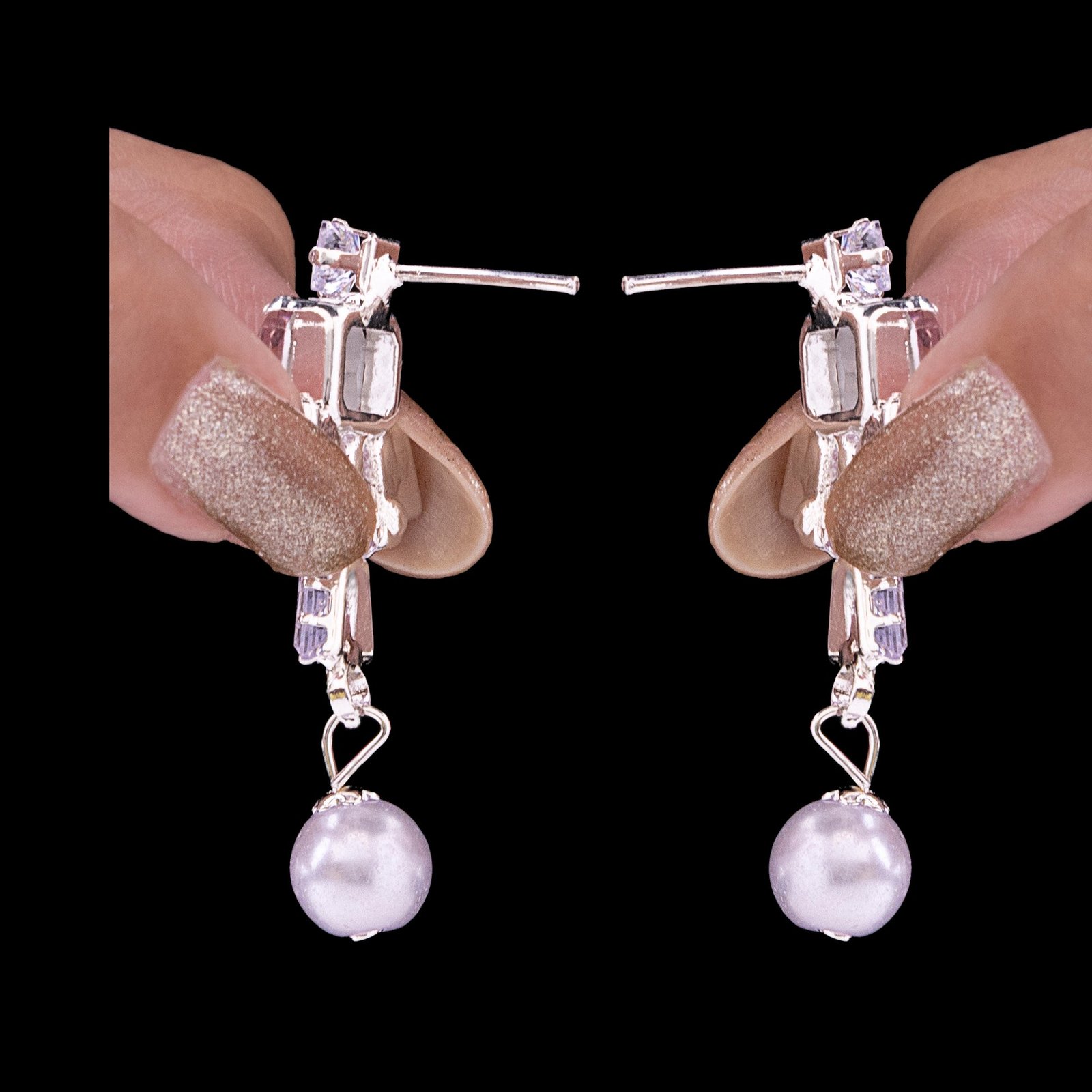 These little earrings are delicate and timeless, combining understated glitter with timeless charm. A lustrous pearl bead gives an elegant touch to each item, which contains a sparkling crystal that catches the light brilliantly. They are ideal for everyday wear because of their simple style, but they are also elegant enough for important events. They are comfortable, light, and provide a tight fit without sacrificing style. These earrings lend a touch of elegance to any ensemble, whether you're wearing them to a formal event, a casual get-together, or the business. They are an essential addition to any jewelry collection due to its adaptable appeal, which goes well with both traditional and modern ensembles. These subtle yet stylish earrings are perfect for anyone who appreciate classic elegance and excellent detailing.