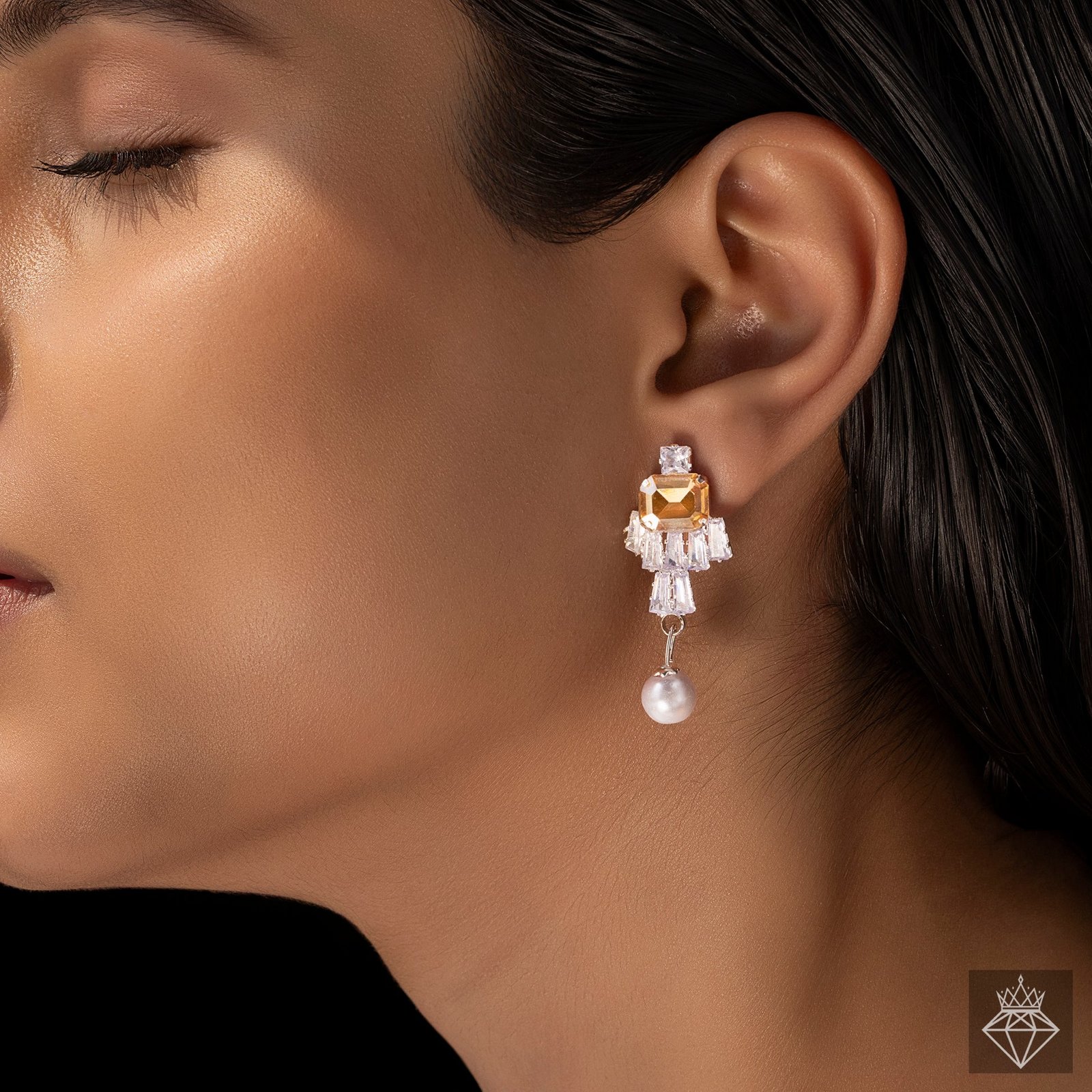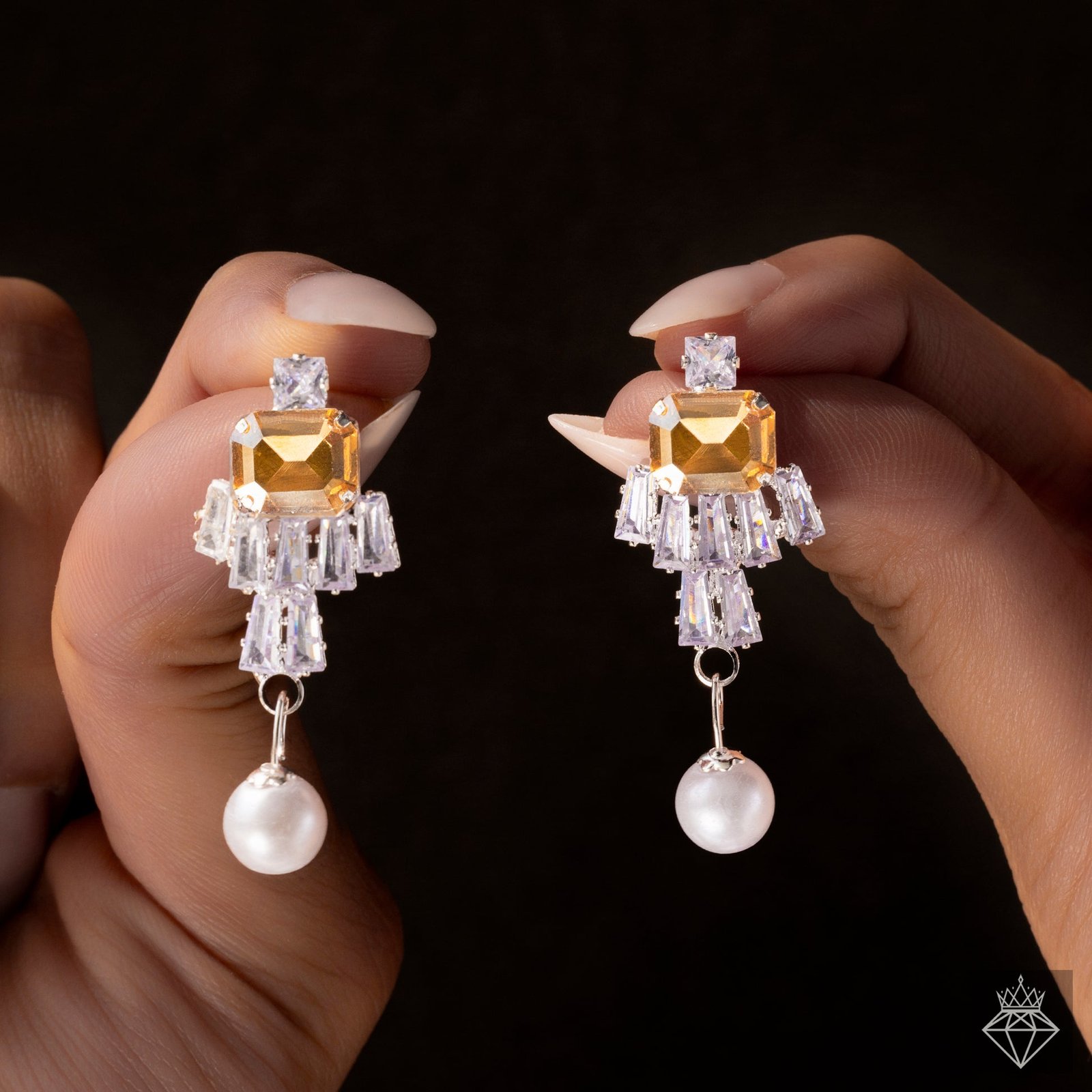 These exquisitely delicate earrings will give your ensemble a hint of understated elegance. They provide the ideal ratio of glitz and refinement, with a dazzling crystal at the top and a smooth pearl bead at the bottom. Their small size makes them perfect for daily use, and their elegant style guarantees that they can be worn to formal events with ease. They are designed to be soft and light, and they rest elegantly on the ears without putting undue strain on them. These earrings provide a delicate, elegant elegance to your look whether you're wearing them with a conventional or contemporary ensemble. They are a classic piece that goes well with any jewelry collection and are ideal for giving as gifts or indulging yourself. These earrings are a wardrobe essential since they are sophisticated, adaptable, and effortlessly fashionable.