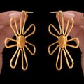 These enormous outlined flower earrings with a gorgeous red cabochon stone in the middle will make a striking and creative statement. The design creates a bold yet elegant accessory that is ideal for high fashion events or special occasions by fusing modern elegance with floral inspiration. The rich red stone offers a splash of color and a hint of luxury, while the delicately defined petals give the earrings a light, airy appearance. These earrings, which are made to stand out, subtly improve any appearance, from a basic dress to a nightgown. They are perfect for extended wear because of the easy and comfortable push-back closure. These earrings add a special charm and self-assurance to your appearance, whether you're dressing for a glamorous photo session or attending a joyous party.