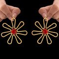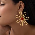 EYRA Earrings Anti-Tarnish Flower Statement with Red Cabochon Danglers