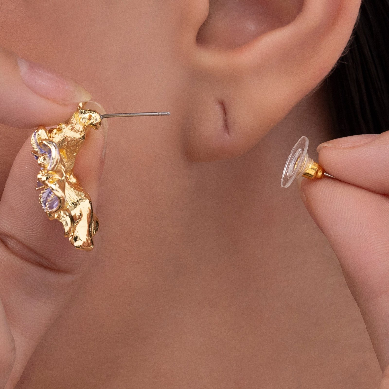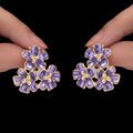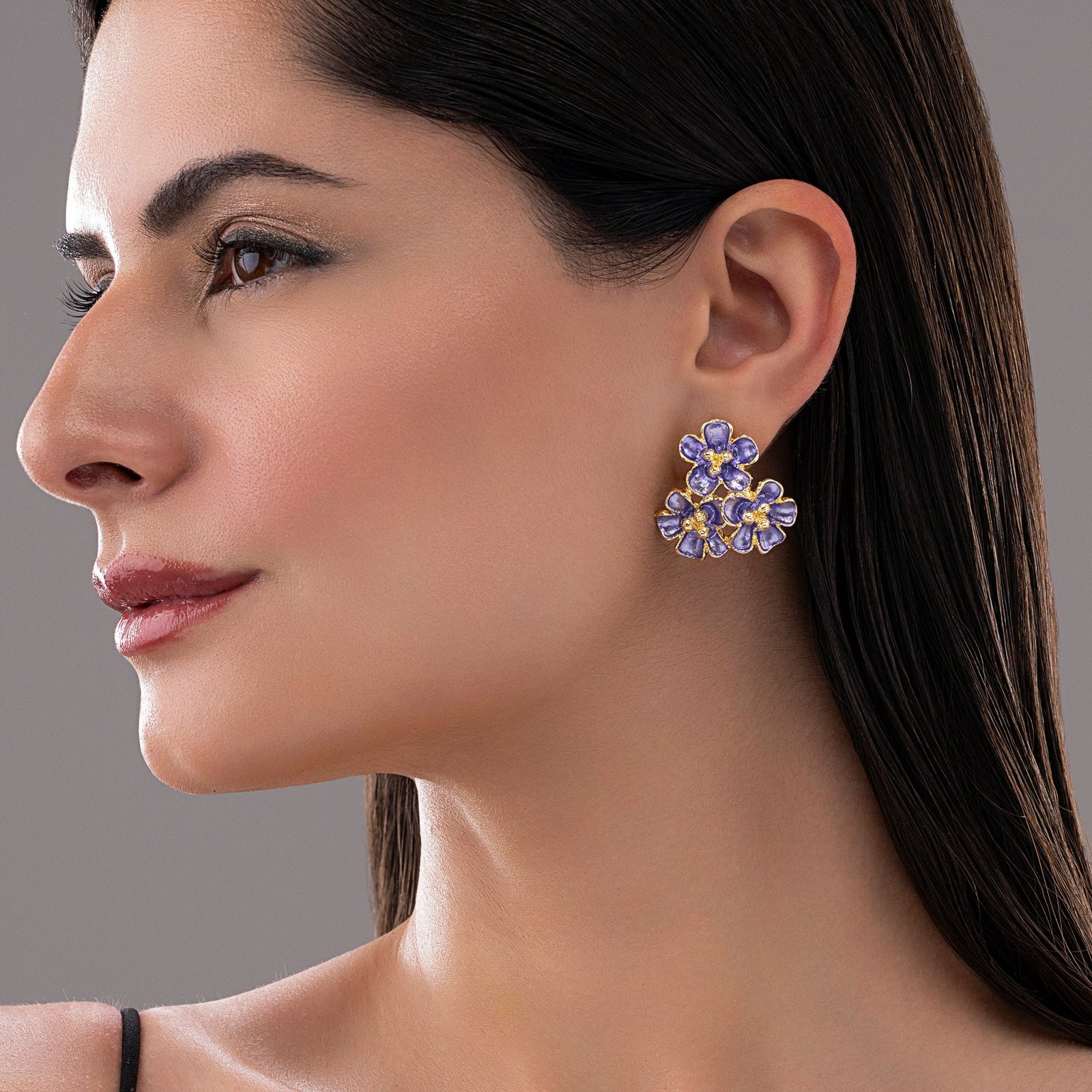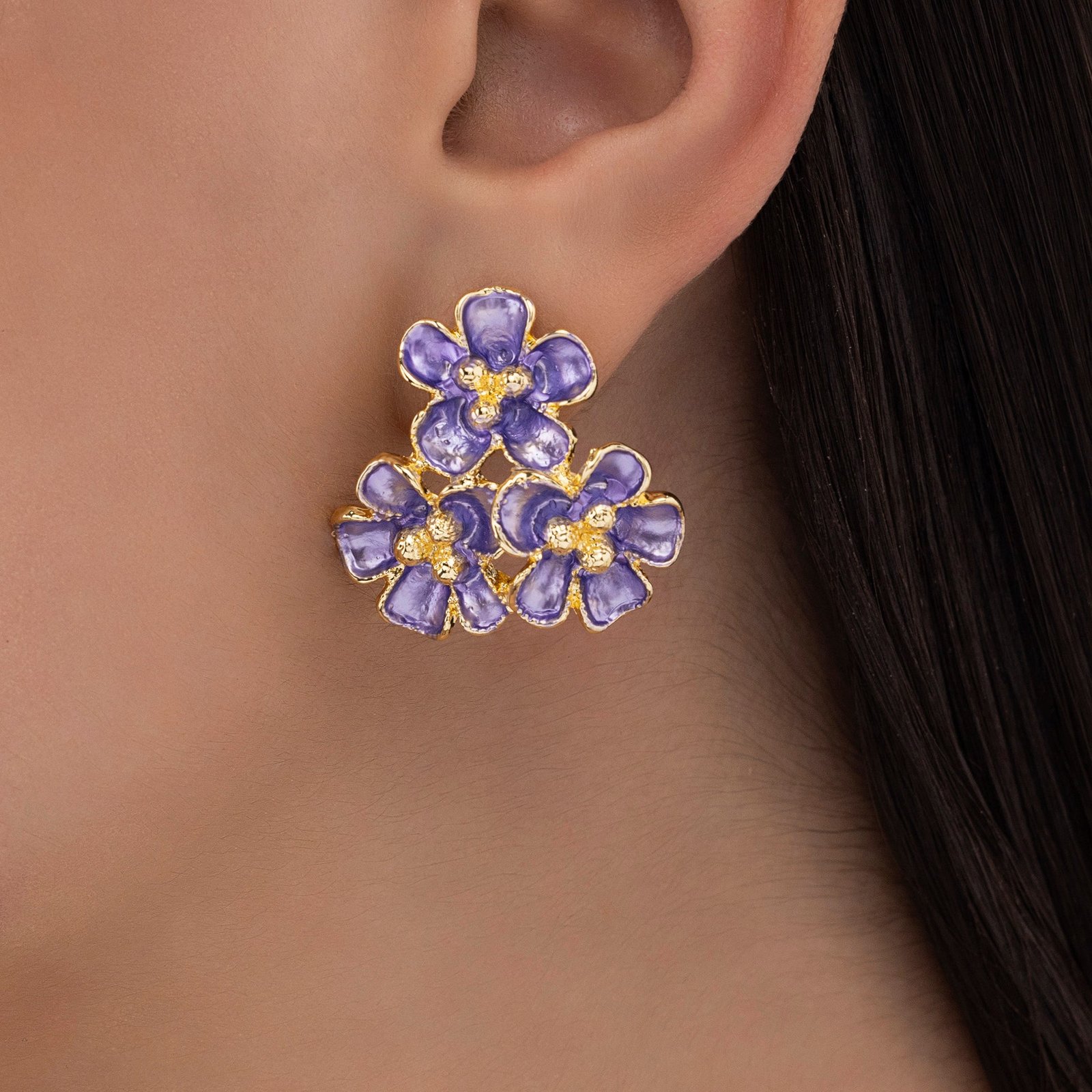 EYRA Earrings Anti-Tarnish Purple Enamel Bunch of Flowers Statement Studs