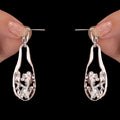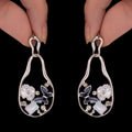 These exquisite and artistic abstract drop-shaped dangling earrings are meant to turn heads. They add a sophisticated yet edgy charm to your ensemble, with a stunning black enamel butterfly delicately nestled within the flowing curve. With glistening crystal accents that provide the perfect amount of glitz, the butterfly represents beauty and metamorphosis. The modern silhouette created by the flowing, abstract design is ideal for enhancing both formal and informal ensembles. These earrings combine classic elegance with creative design and are lightweight and comfortable for all-day wear. They are really striking because of the contrast between the black enamel and the gleam of the crystals. These earrings provide a distinctive fusion of femininity, charm, and modern style, making them perfect for anyone who enjoy wearing jewelry that is bold and expressive.