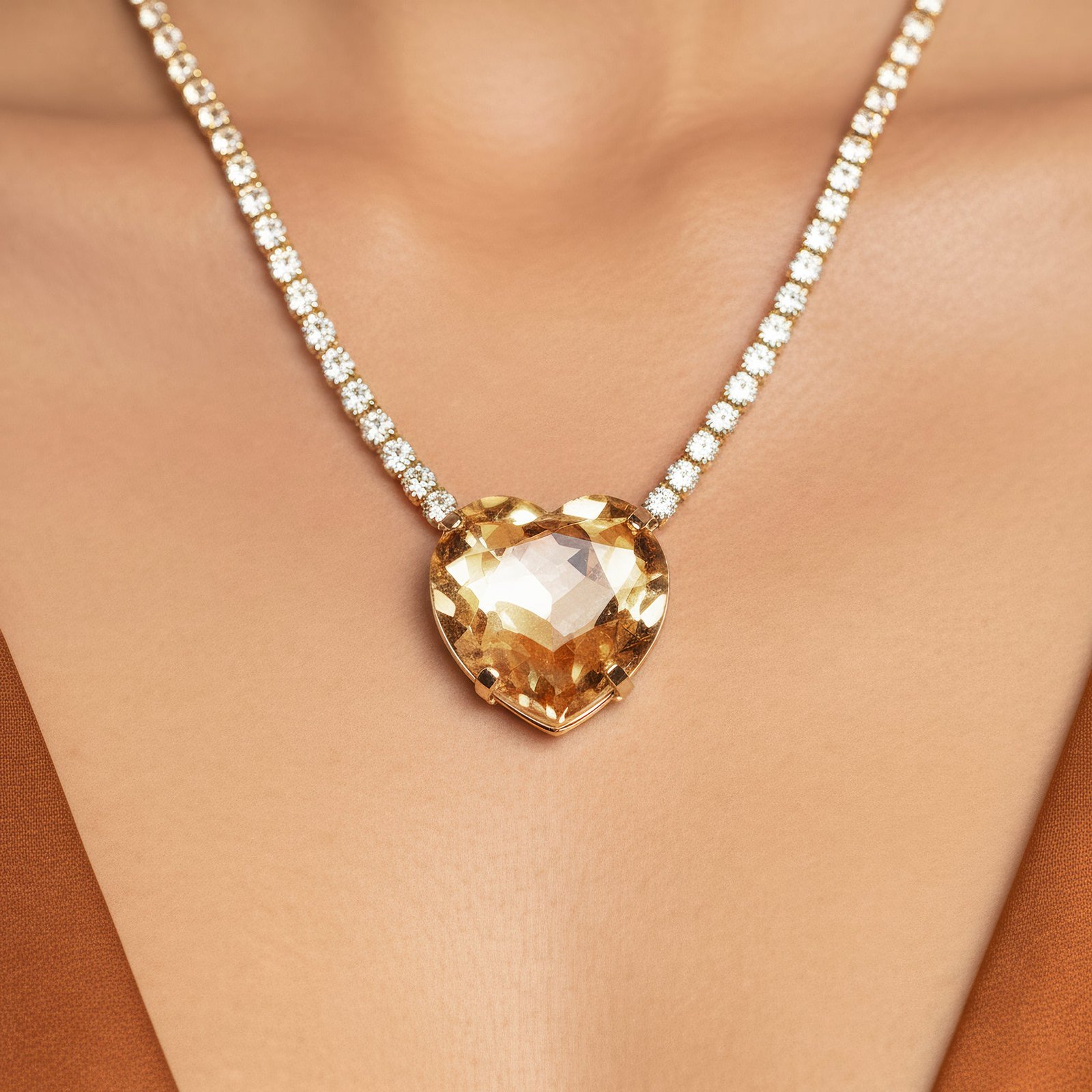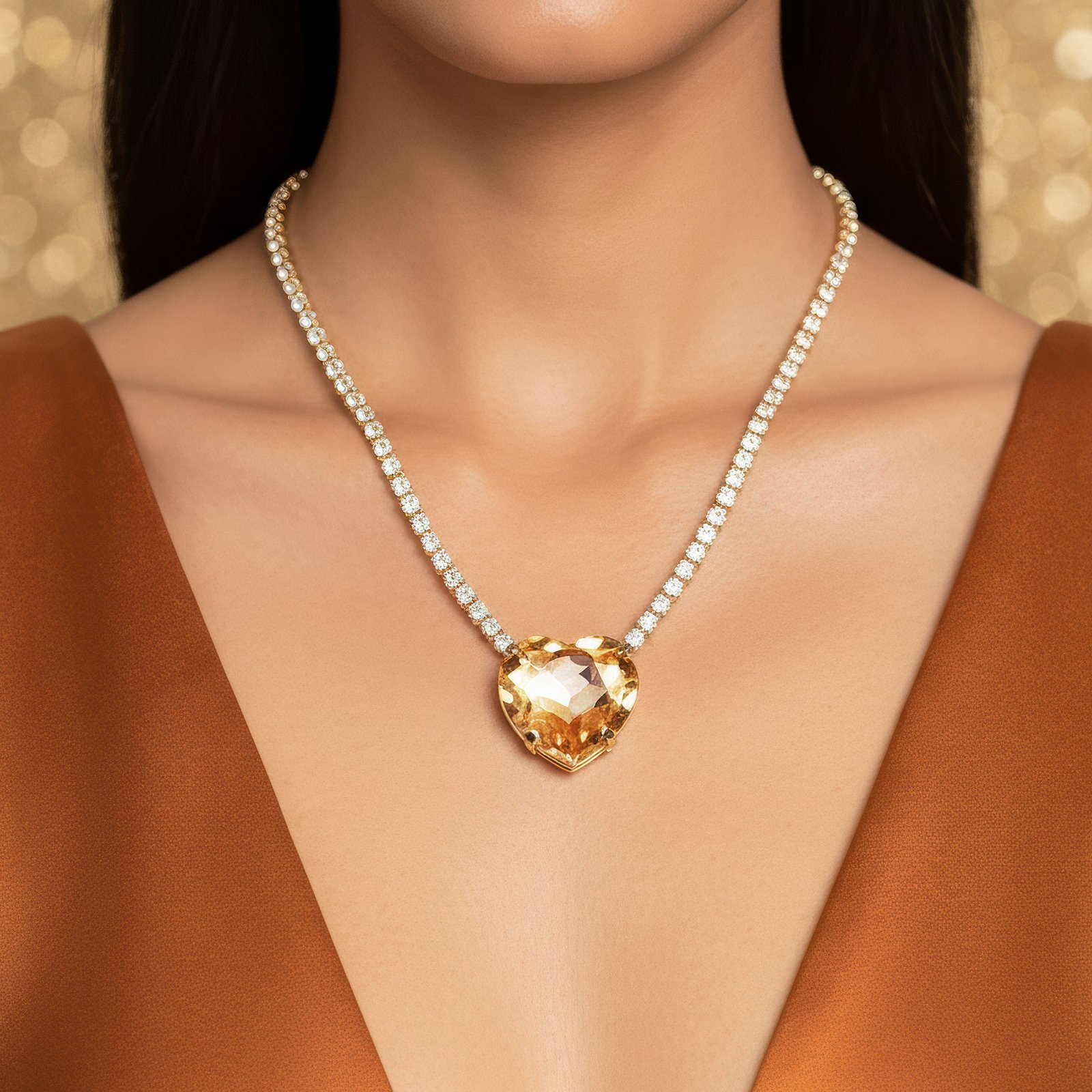 EYRA Necklace Anti-Tarnish Oversized Crystal Heart Shape Studded