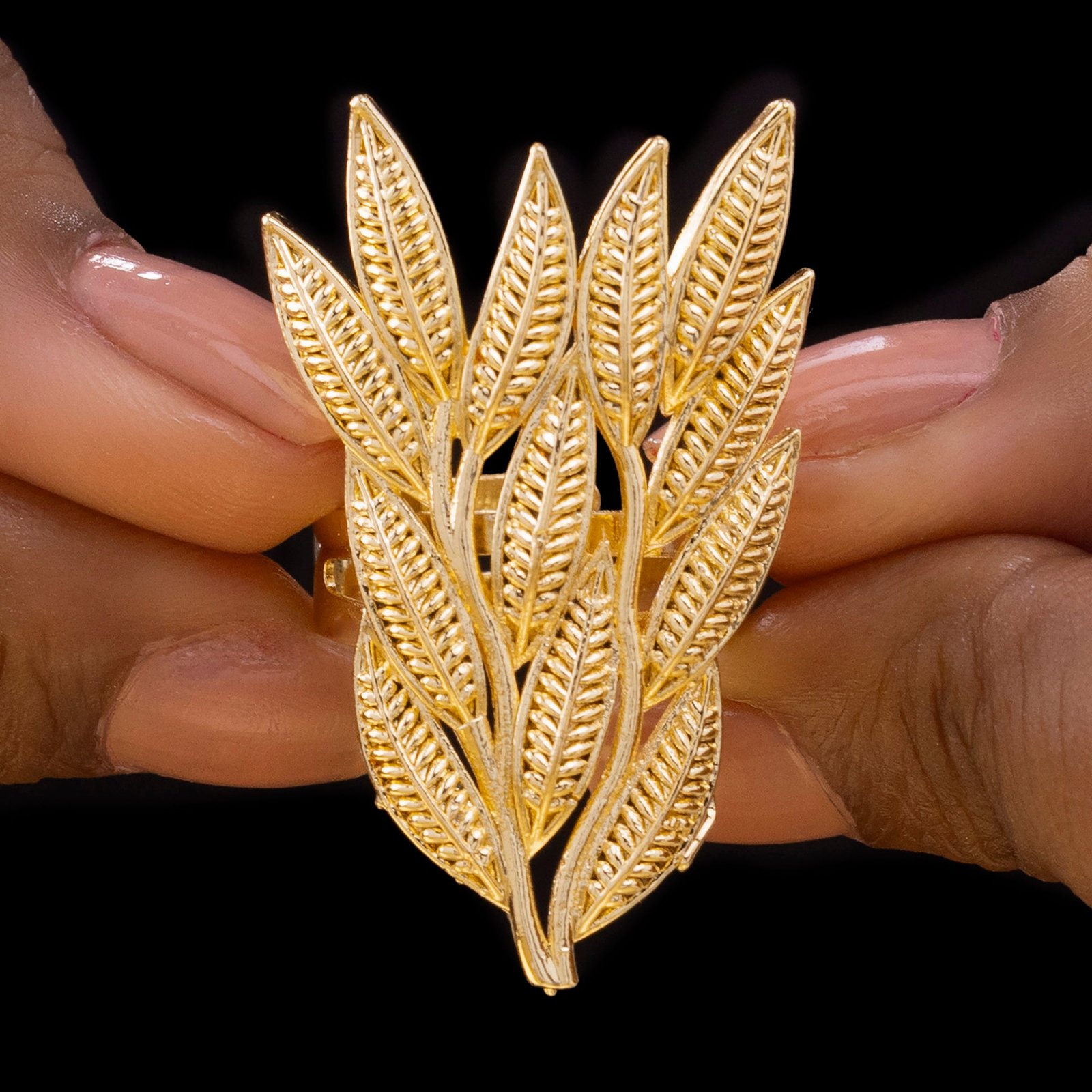EYRA Ring Anti-Tarnish Golden Leaves Cocktail (Adjustable Size)