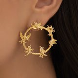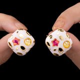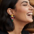 A remarkable combination of geometry, color, and contemporary craftsmanship can be found in these multicolored, mixed-shape statement earrings with a mobile triangular pattern. They are made using a variety of striking colors and whimsical shapes, and their tumbling triangle arrangement produces a dynamic and sculpture-like silhouette. The earrings have a mobile-like look that catches light and adds fluidity with each step since each form moves individually. They stand out thanks to their vivid color scheme, which makes them ideal for celebrations, parties, or just adding individuality to regular outfits. They are bold yet lightweight, striking a mix between artistic charm and modern edge. These earrings, which are made to elegantly frame the face, are a multipurpose statement item for people who appreciate bold, imaginative, and vibrant fashion.