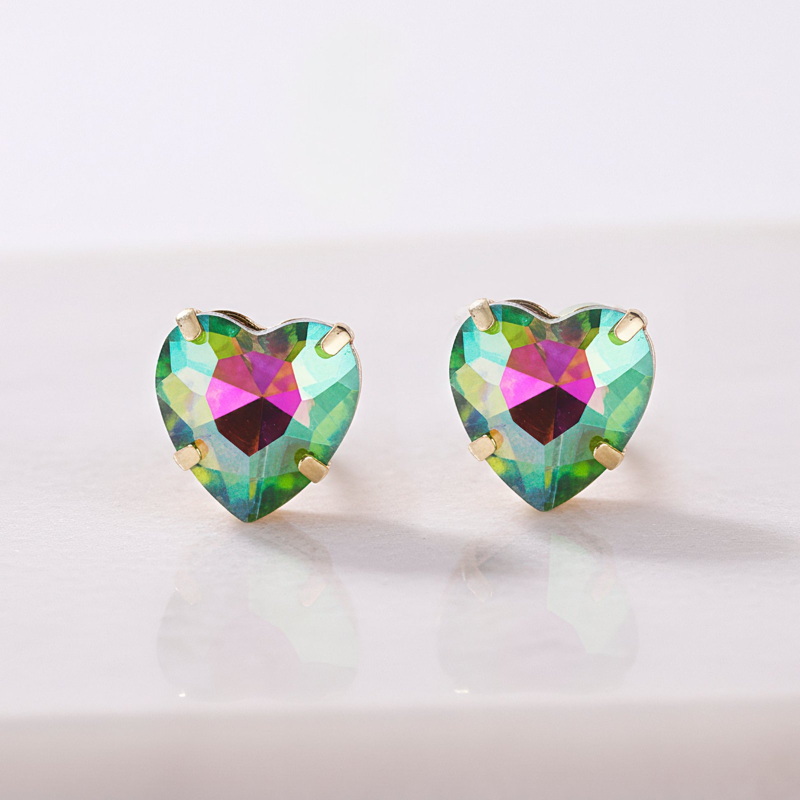 EYRA Earrings Anti-Tarnish Convertible Rainbow Heart & Crystal Studs