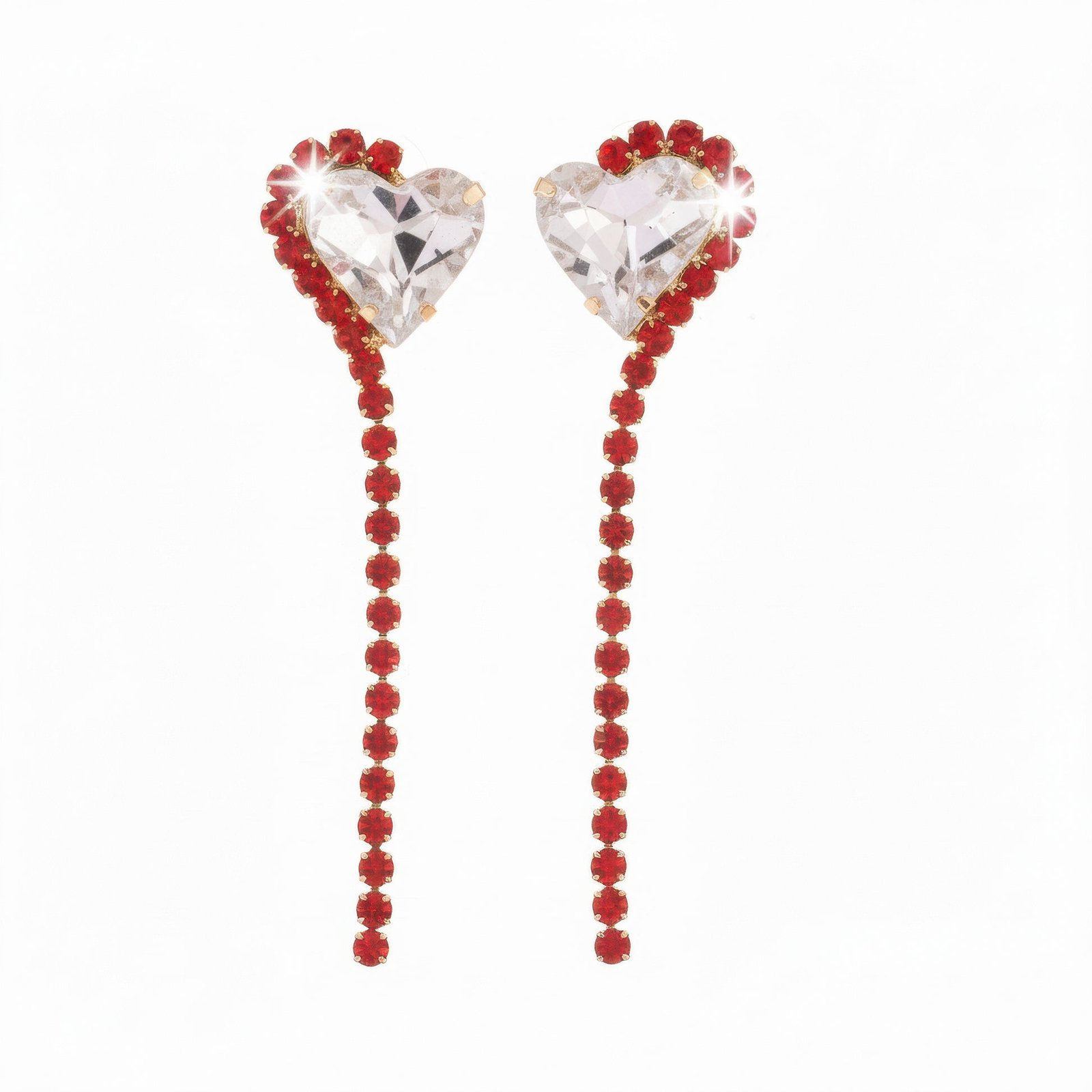 EYRA Earrings Anti-Tarnish Rhinestone Chain with Heart Crystal Danglers