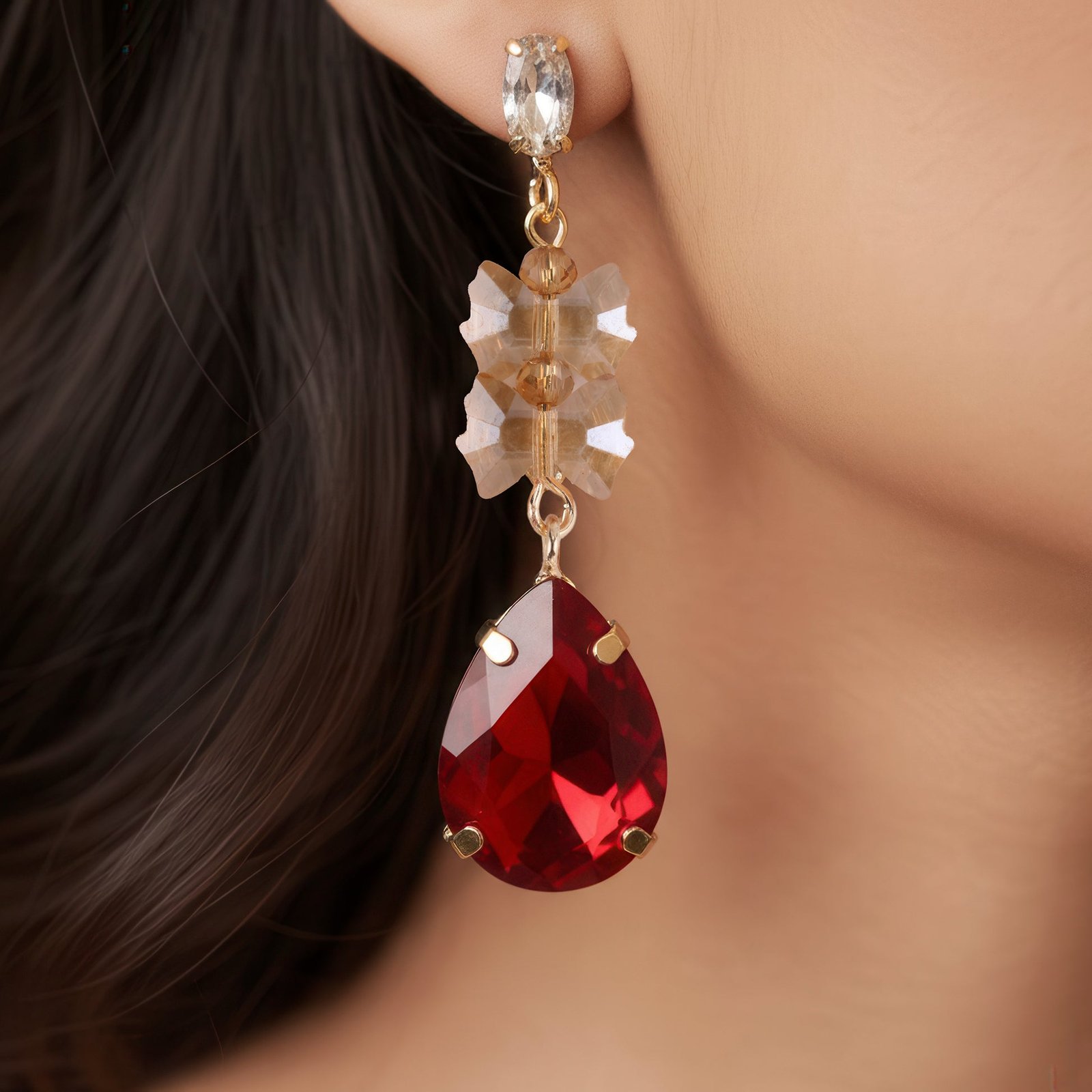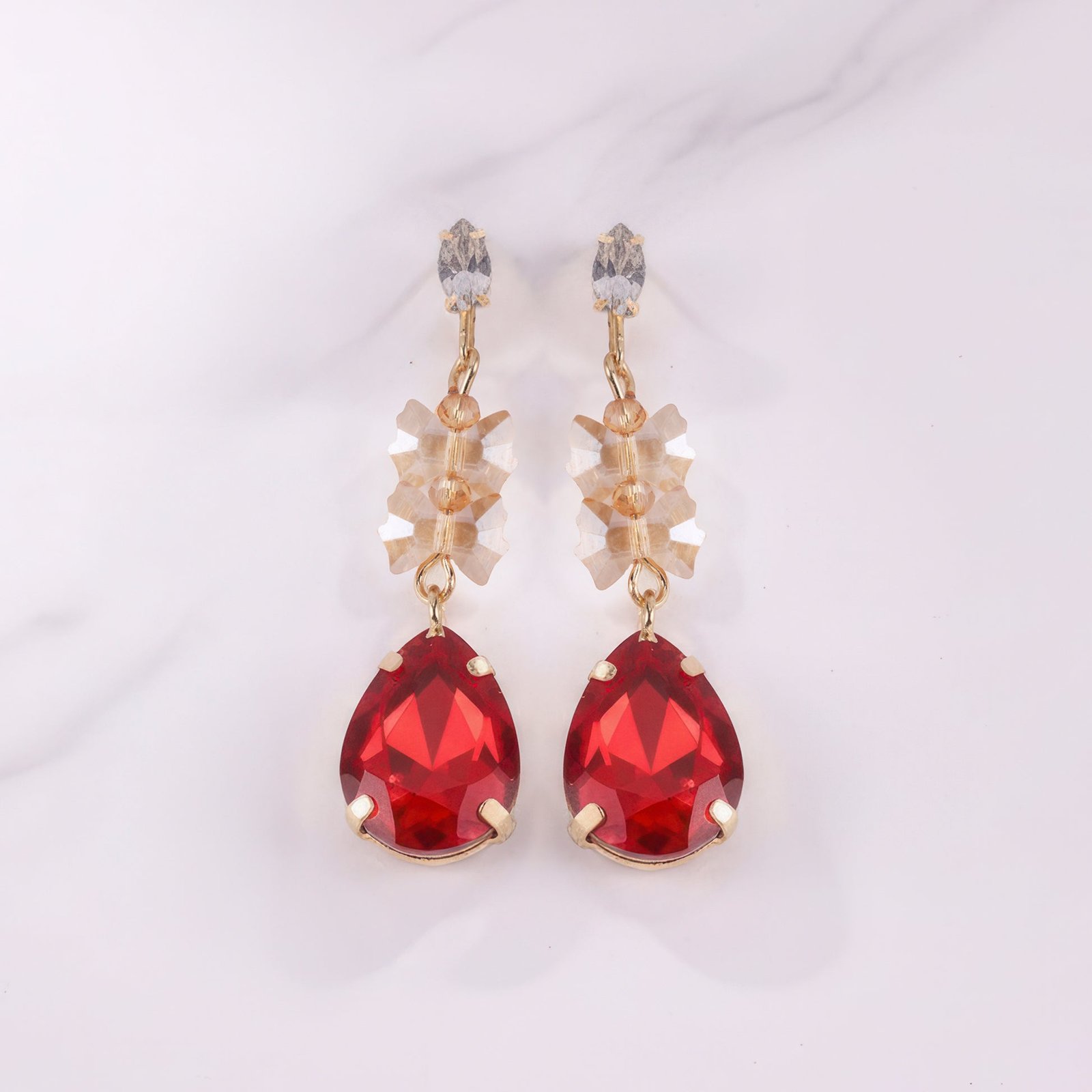 EYRA Earrings Anti-Tarnish Bow-Tie Bead With Drop Crystal Danglers