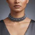 EYRA Necklace Triple Layer Blackish Grey Pearl Choker