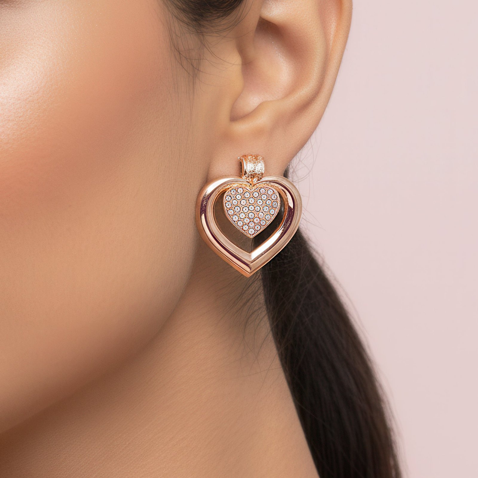 EYRA Necklace Anti-Tarnish Double Studded Heart Pendant Set With Earrings