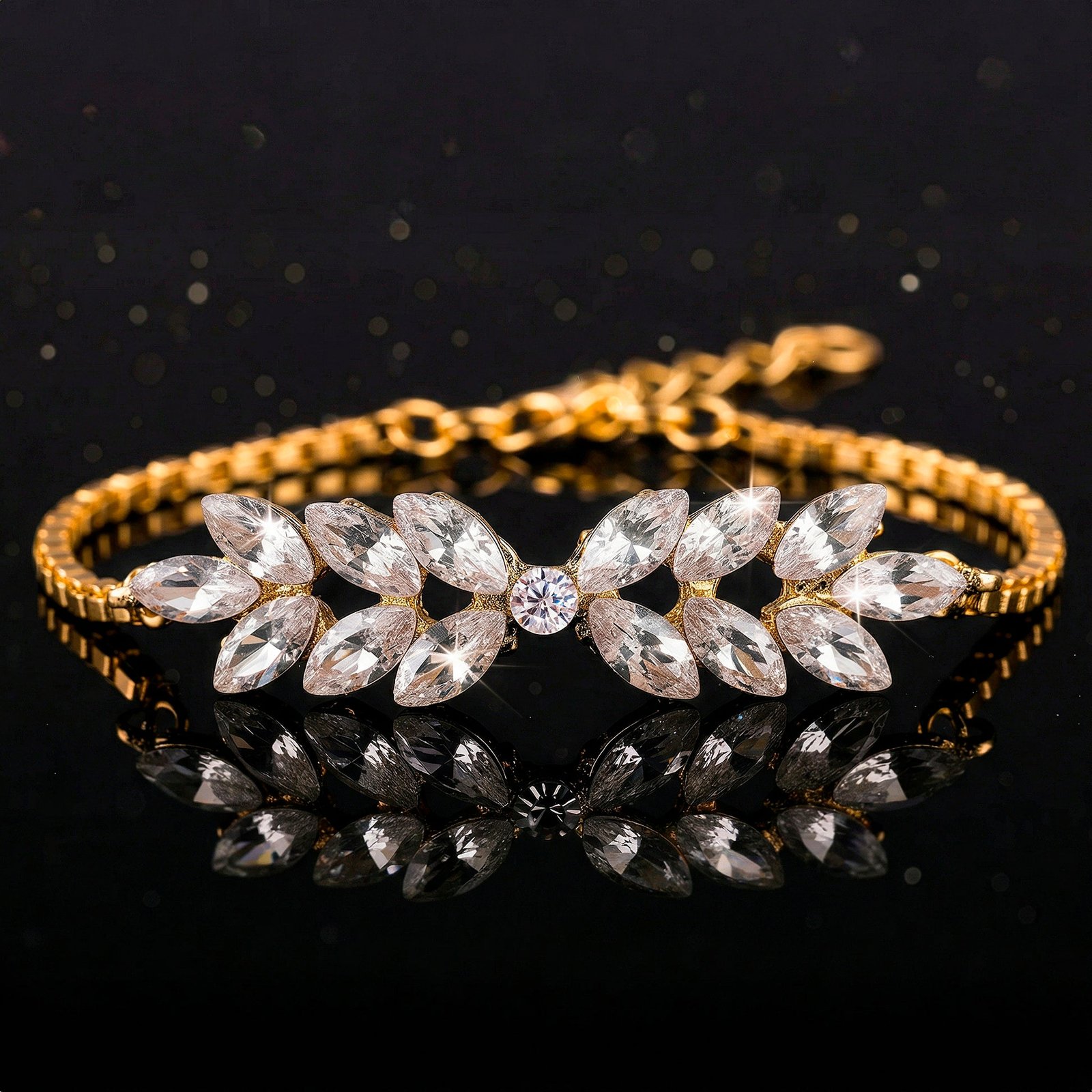 EYRA Bracelet Anti-Tarnish Crystal Leafy-Style Chain (Adjustable Size)