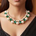 EYRA Necklace Pearl & Emerald Crystal Statement