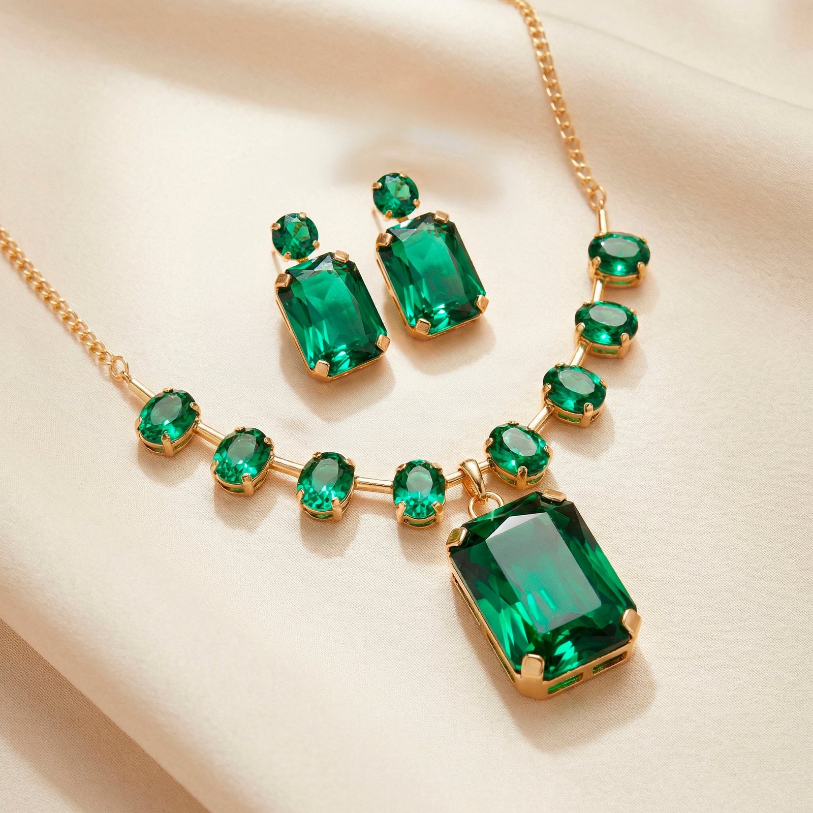 EYRA Necklace Anti-Tarnish Emerald Set With Earrings